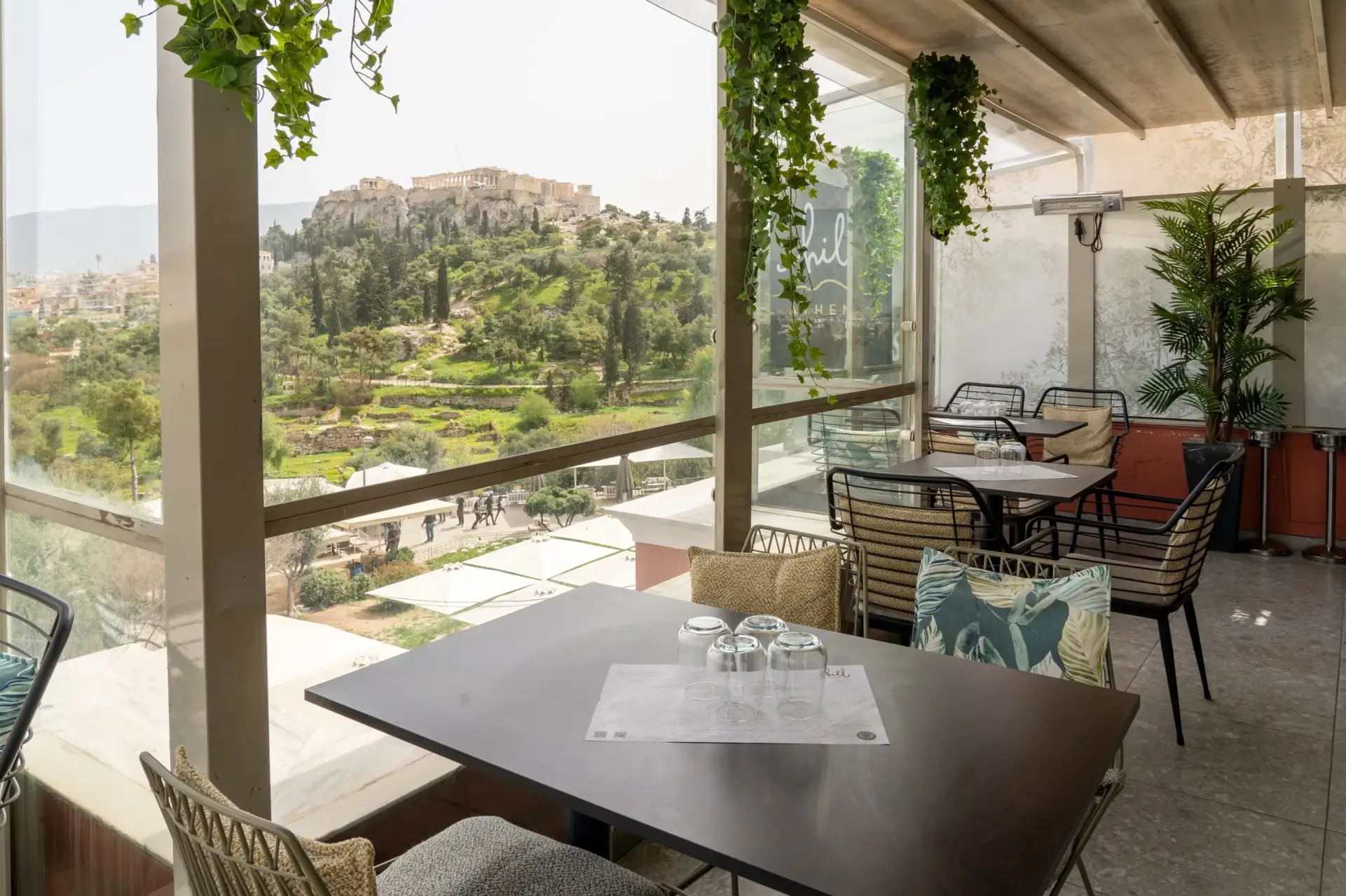 Ξεκινήστε λοιπόν τη μέρα σας με τον αγαπημένο σας καφέ, δοκιμάστε τα πιάτα που επιθυμείτε από το μενού των ελληνικών συνταγών, συνδυάστε τα με ένα μπουκάλι κρασί από τον ελληνικό αμπελώνα, ανακαλύψτε τυριά και αλλαντικά μικρών Ελλήνων παραγωγών, απολαύστε παραδοσιακά γλυκά, μεσογειακά κοκτέηλ και ζήστε την ελληνική φιλοξενία μέσα από τις γεύσεις της και την απρόσκοπτη θέα προς την Ακρόπολη.